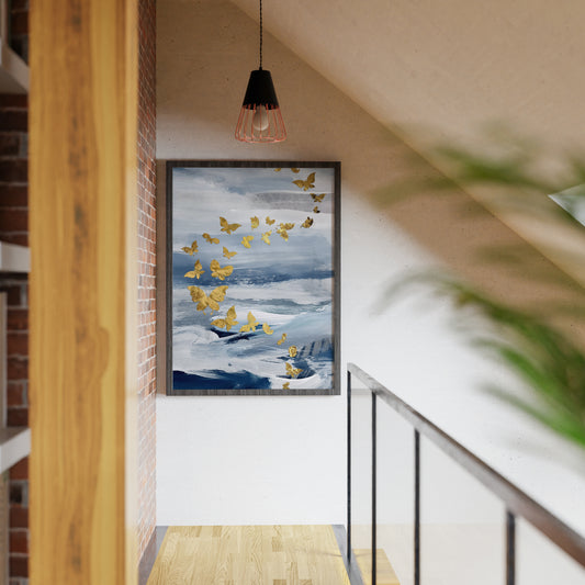 Blue Fish Gold Foil Oil Painting Wall Poster