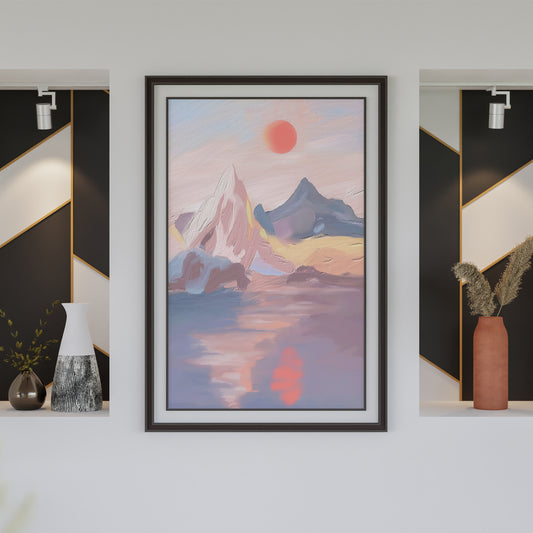 Pink and Purple Mountain Oil Painting Abstract Wall Art Poster