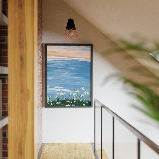 Minimalist Abstract Blue Ocean Landscape Art Painting Poster